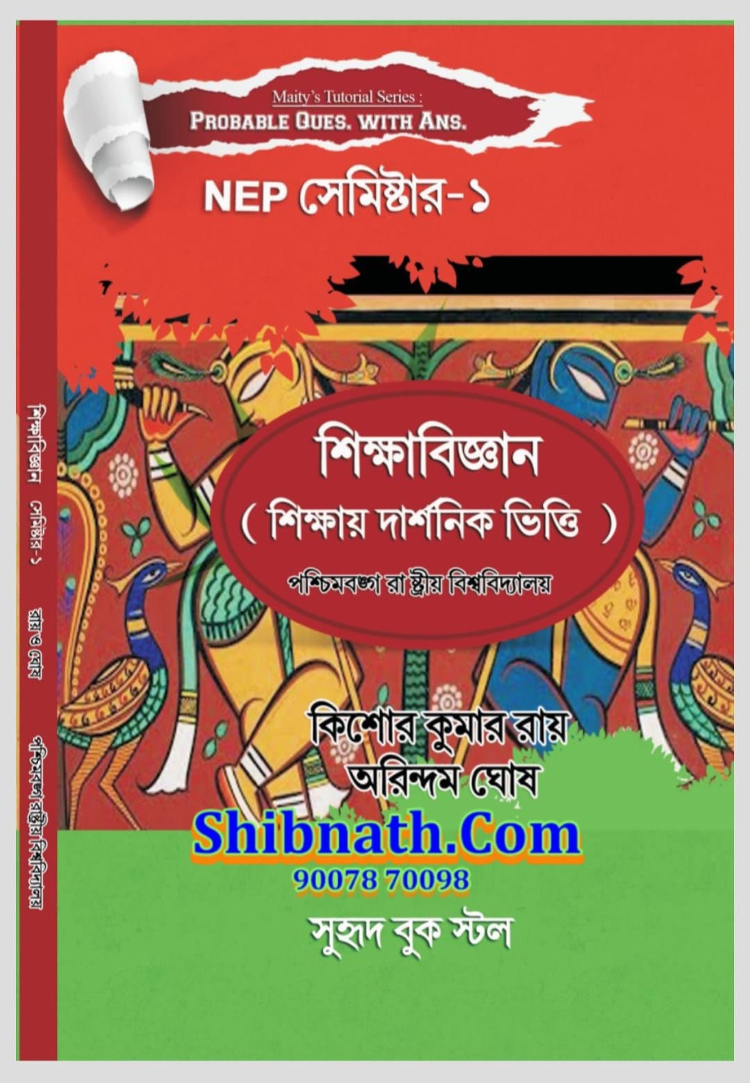 Book titled is “SikshaBigyan (Philosophical Basis of Education)” for the first semester of the NEP curriculum. The book is part of “Maity’s Tutorial Series” and is published by Suhrid Publication. It is authored by Kishore Kumar Ray and Arindam Ghosh.